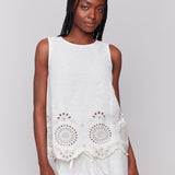 Sleeveless Linen Top with Eyelet Embroidery - Sugar River Shoppe