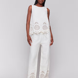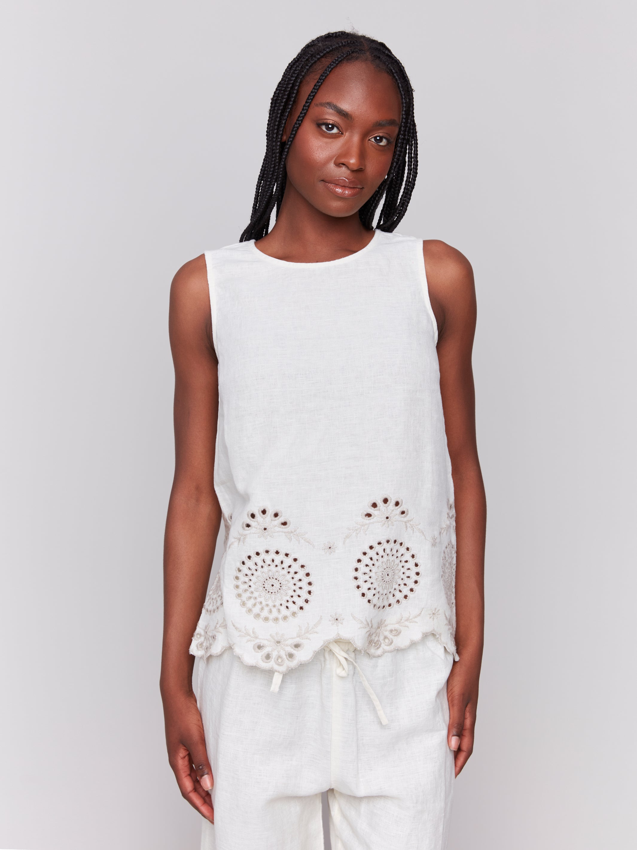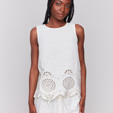 Sleeveless Linen Top with Eyelet Embroidery