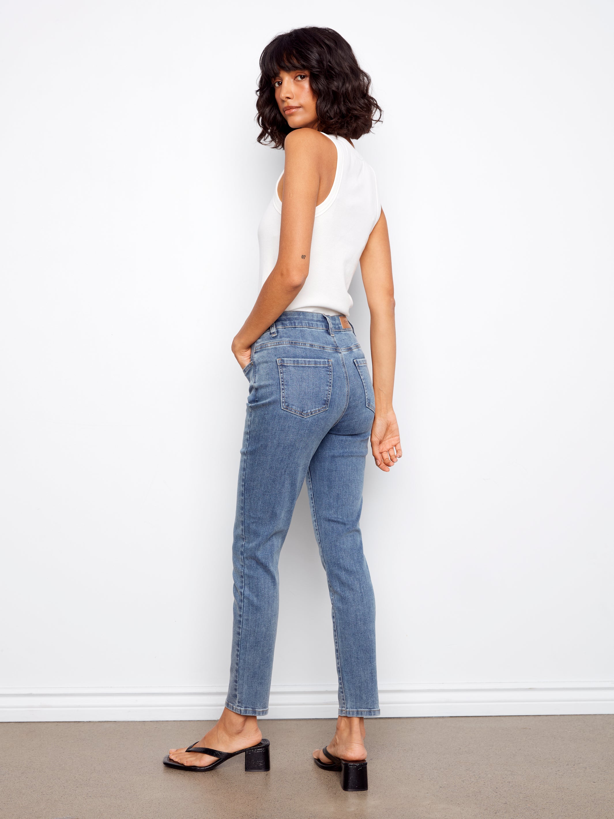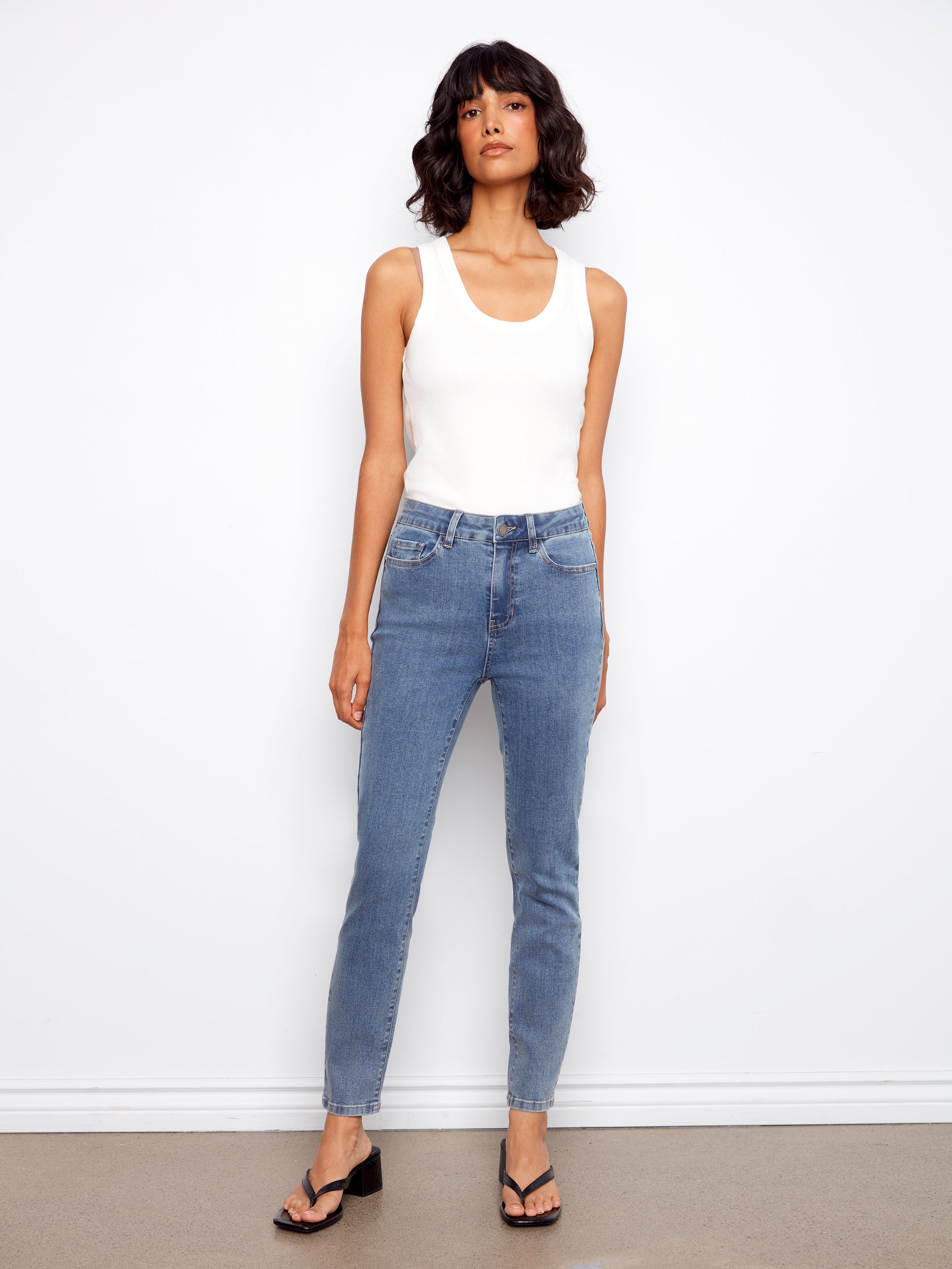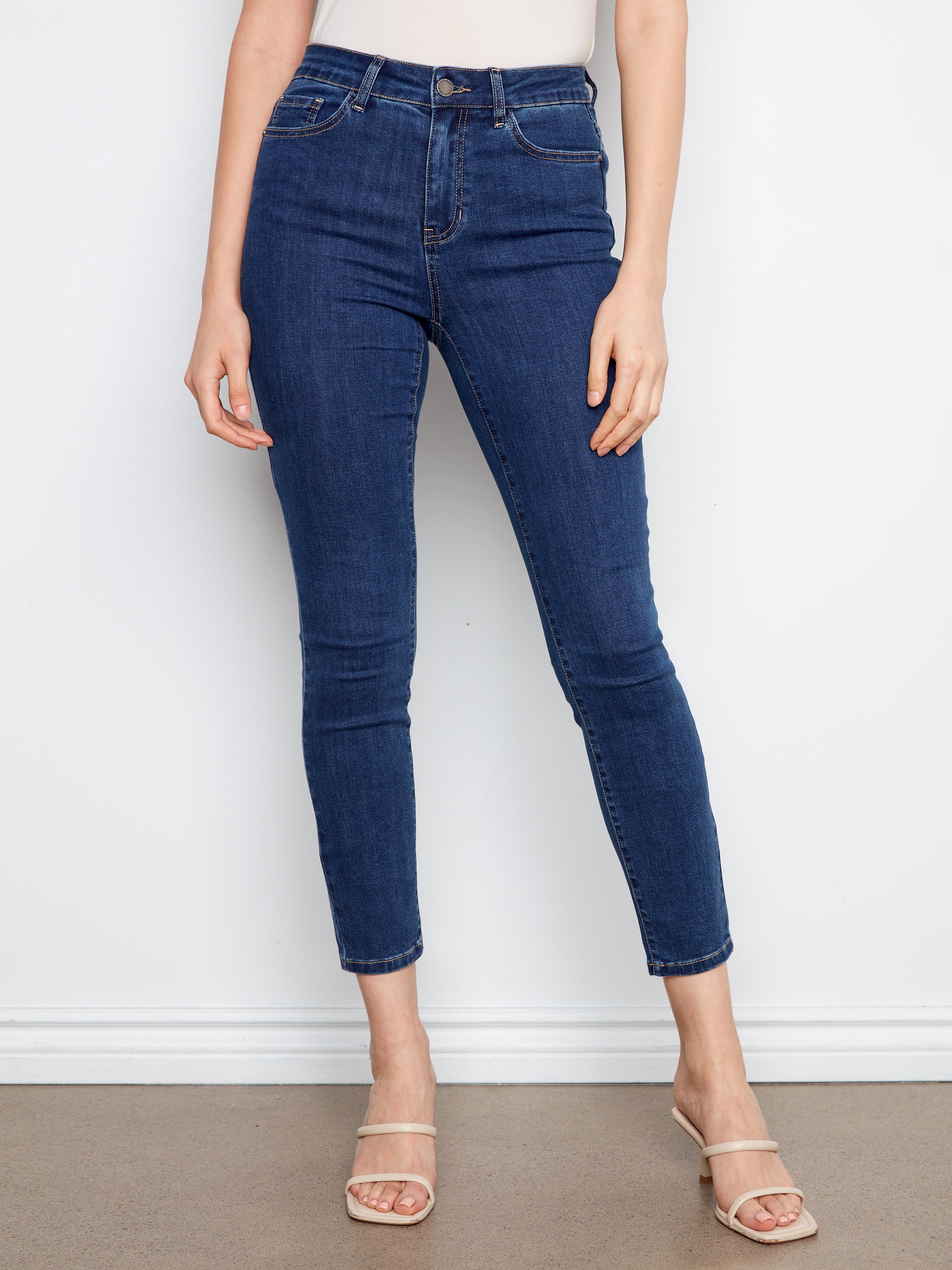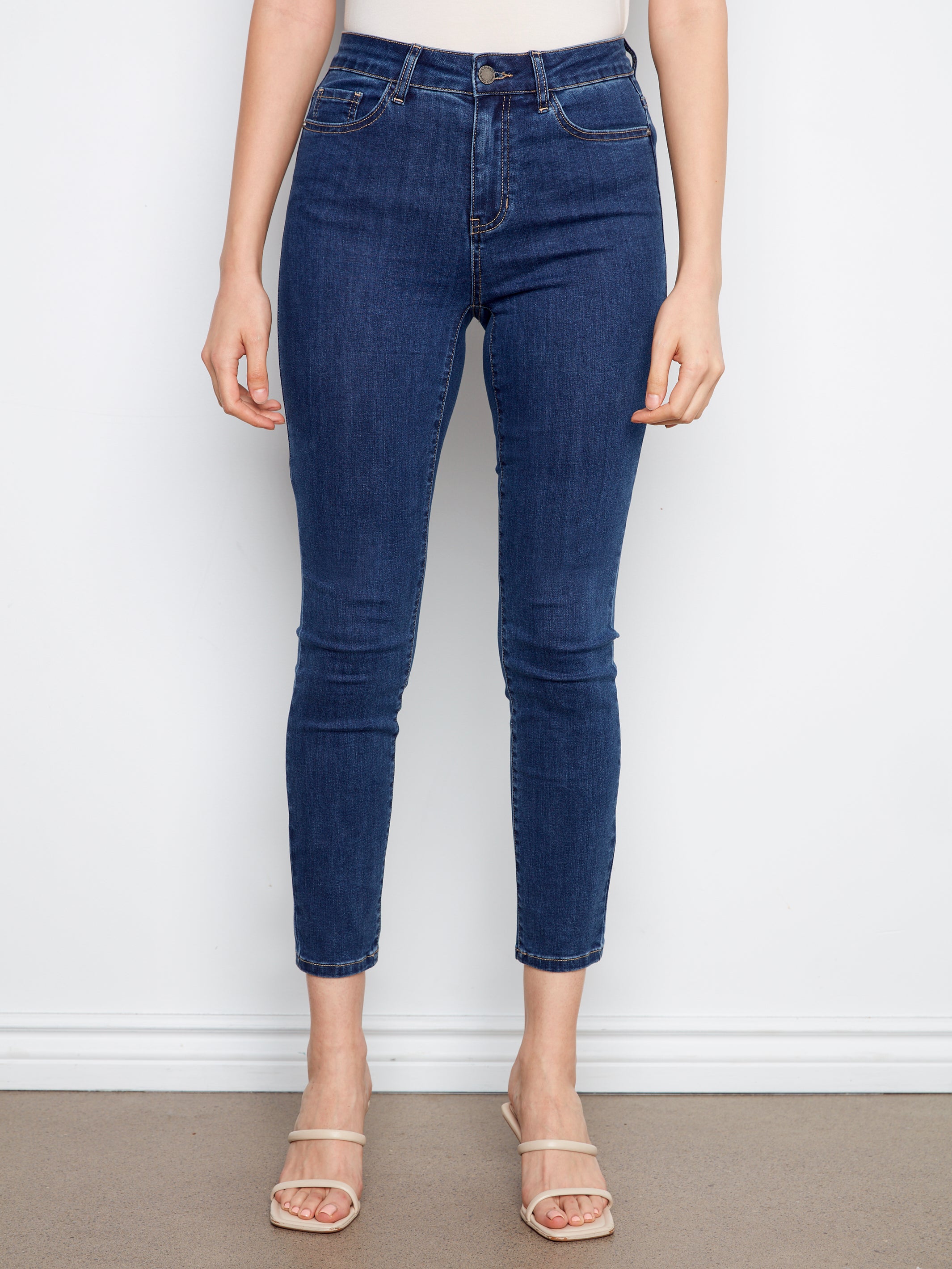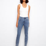 The Claudia slim jeans feature a modern slim leg cut designed for everyday versatility. These indigo jeans come in a deep indigo wash that can be styled for both casual wear and more polished looks. Made with stretch denim, they provide comfort and flexibility while maintaining their shape. The ankle-length design and classic five-pocket construction make them a reliable choice for a wide range of outfits.
