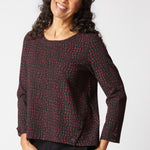 Angled side plackets with button and tabs at sleeves. Center front seam and hi lo hem. All the unique details that make a Habitat top special.