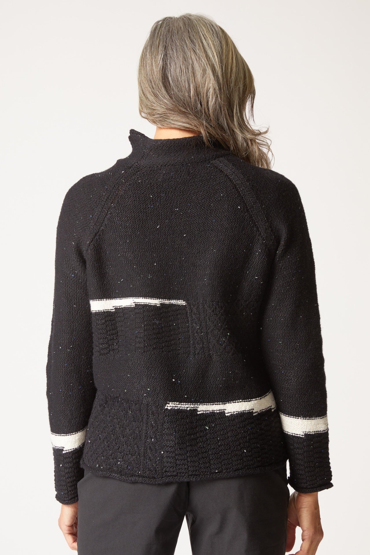 Tone on tone twisted yearn create a mélange effect while beautiful mixed stitches create a one-of-a-kind piece.
