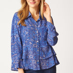 A perennial best seller in our exclusive new vine print. Viscose Rayon crepe drapes beautifully and travels well. Subtle flounce at sleeves and hem.