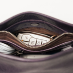 Smart Interior Organization Stay organized with our signature hidden cell phone pocket (secured with a hidden magnetic snap), back wall zip pocket, 4 credit card slots, and a slip pocket for quick-access items.