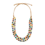 The Adela Necklace features vibrant, hand-carved tagua squares strung into a stylish, adjustable design ranging from 20 to 37 inches. This versatile piece allows for customized wear, combining natural materials with expert craftsmanship to enhance any outfit with a unique, eco-friendly touch.