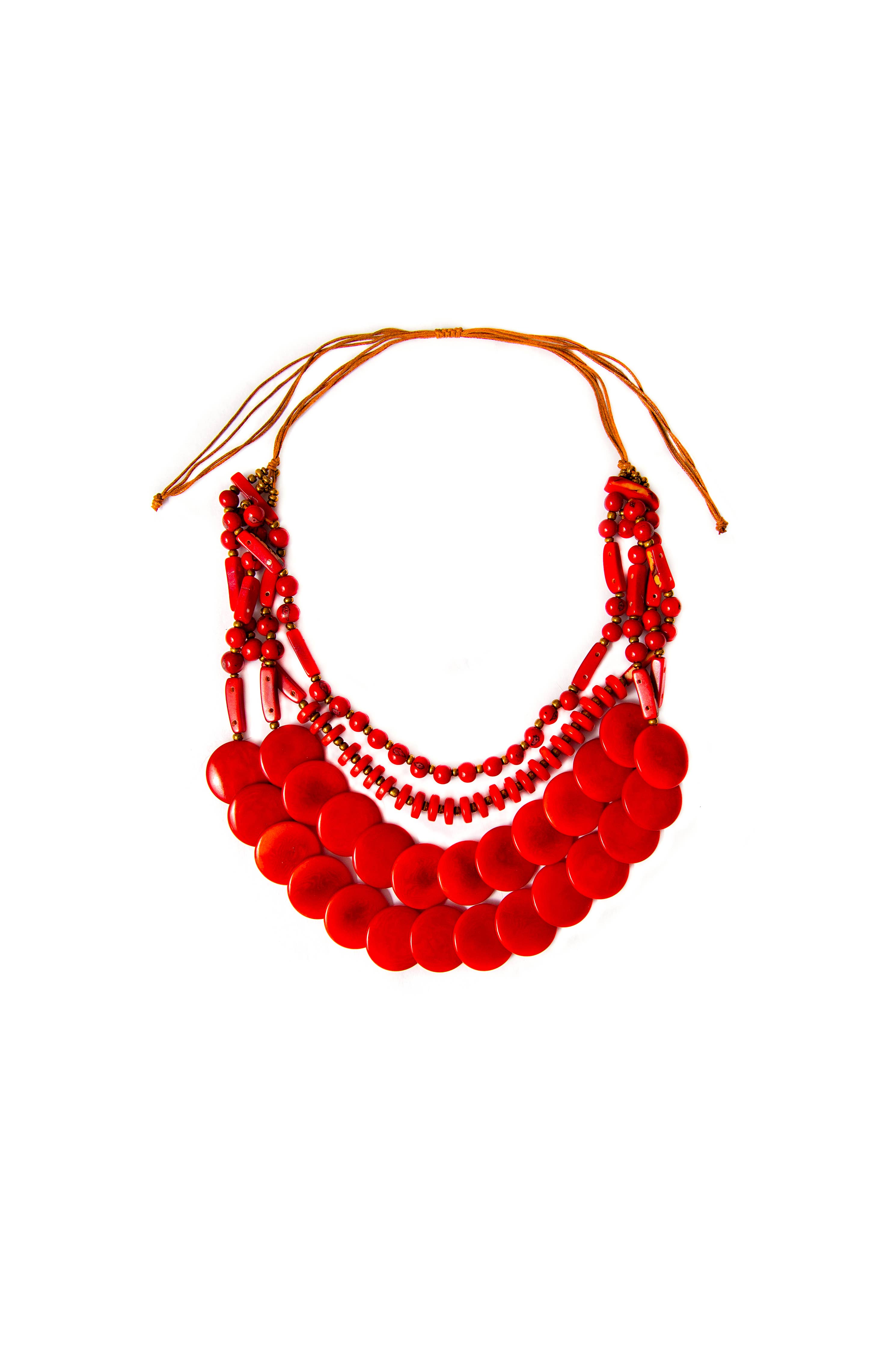 Trendsetting eco-friendly adjustable necklace made with various tagua pieces and acai berries Adjustable 24" - 36" L
