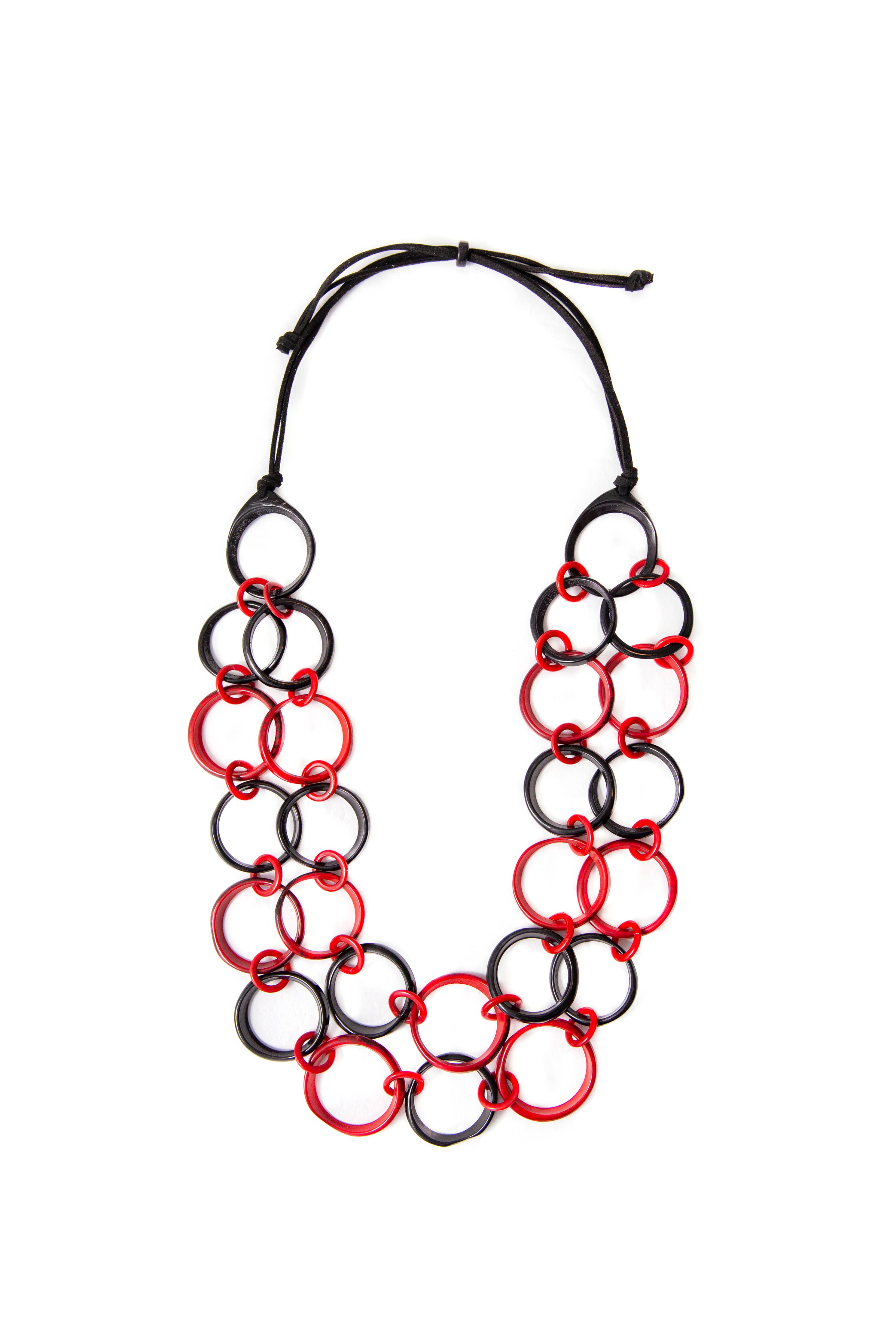 •Adjustable 26"-39" L •Made with sustainable Tagua nut • Faux Leather cord • Vegetable dyes • Handcrafted in Ecuador • Due to the nature and size of the tagua nuts, all sizes are approximate…not exact.