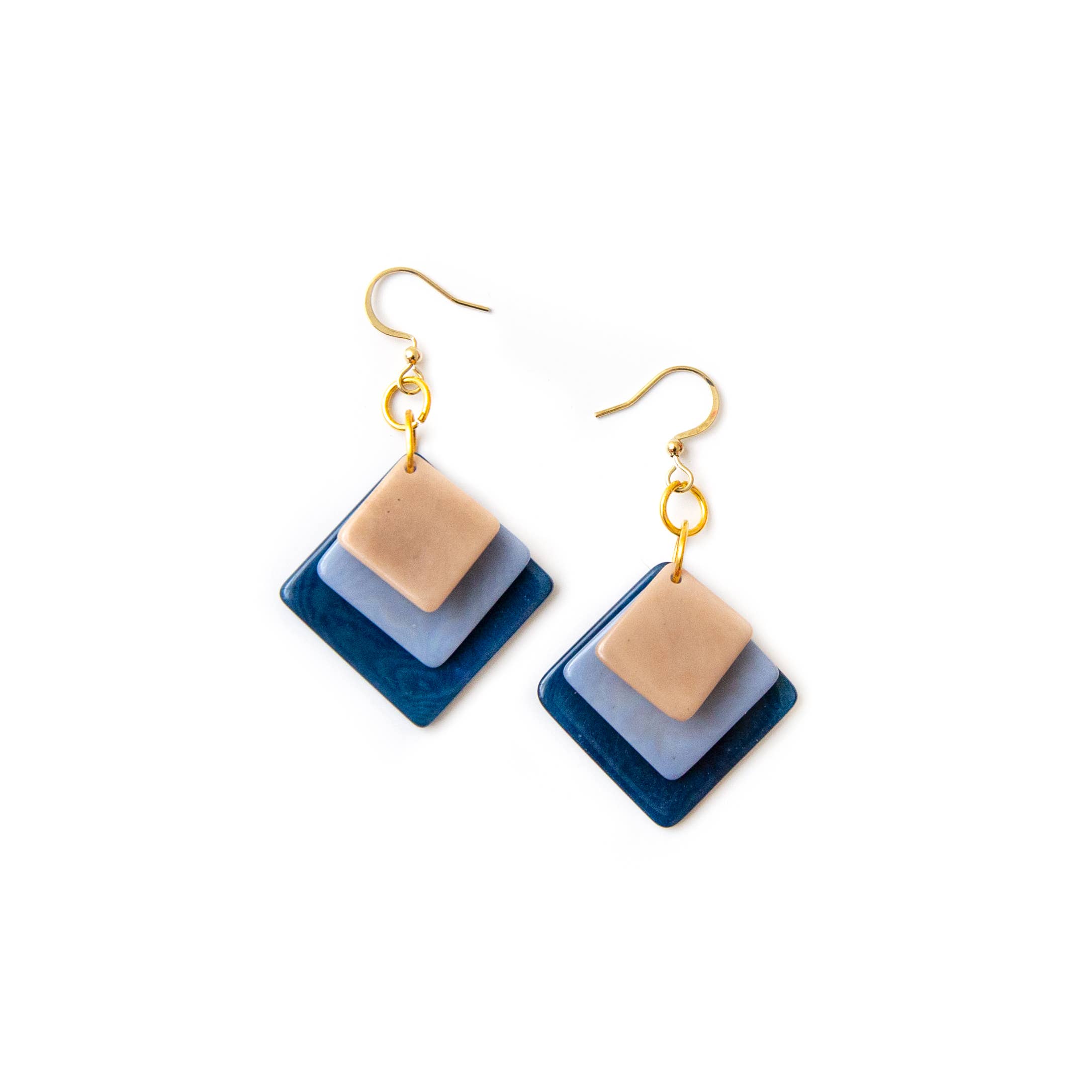Elegant dangle earrings with layers of colorful tagua squares.