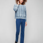 Crew Neck Sweater with Front Body in Fancy Stitch