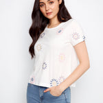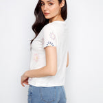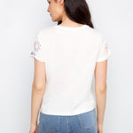 Embroidered Front Cotton Jersey T-Shirt With Rolled Cuff and Daises