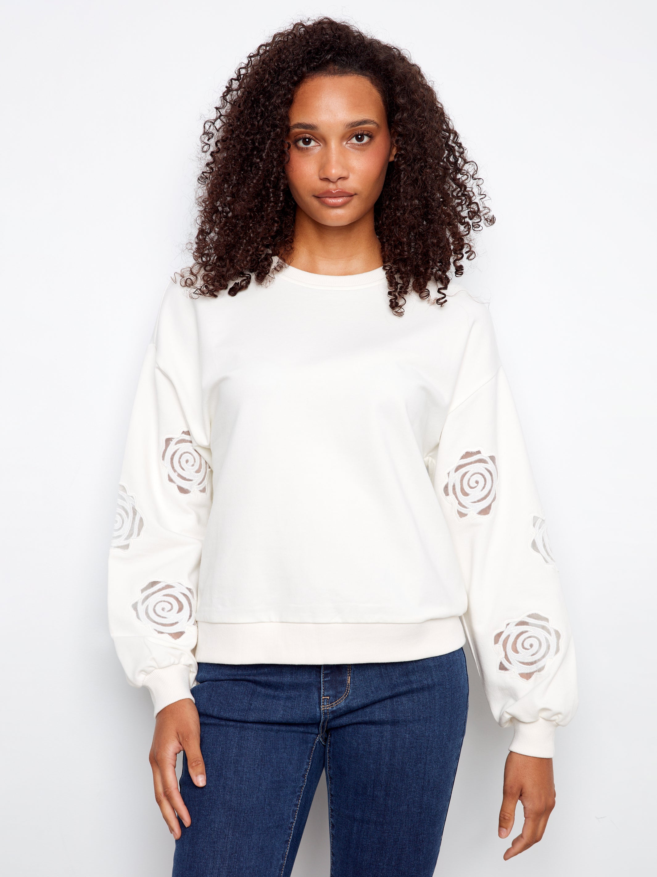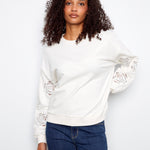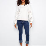 Long Sleeve French Terry Top with Sleeve Embroidery