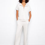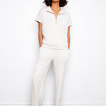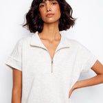 Short Sleeve Half-Zip Collar Top with Blanket Stitch