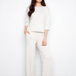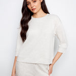 Soft Scuba 3/4 Sleeve Top with Blanket Stitch