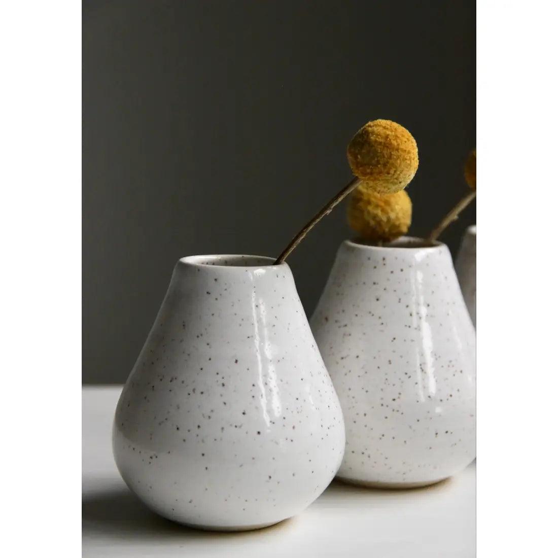 Handmade Speckled White Ceramic Bud Vase - Sugar River Shoppe