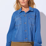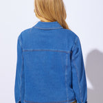 A timeless silhouette with a modern twist—this classic denim jacket is reimagined in a lightweight, stretch-knit fabric that offers soft comfort and easy movement. Designed with all the traditional details you love, including a collared neckline, metal button front, chest pockets, and button-cuffed long sleeves. Intersecting chest seams add subtle structure, while the flexible fabrication makes it perfect for layering from day to night.